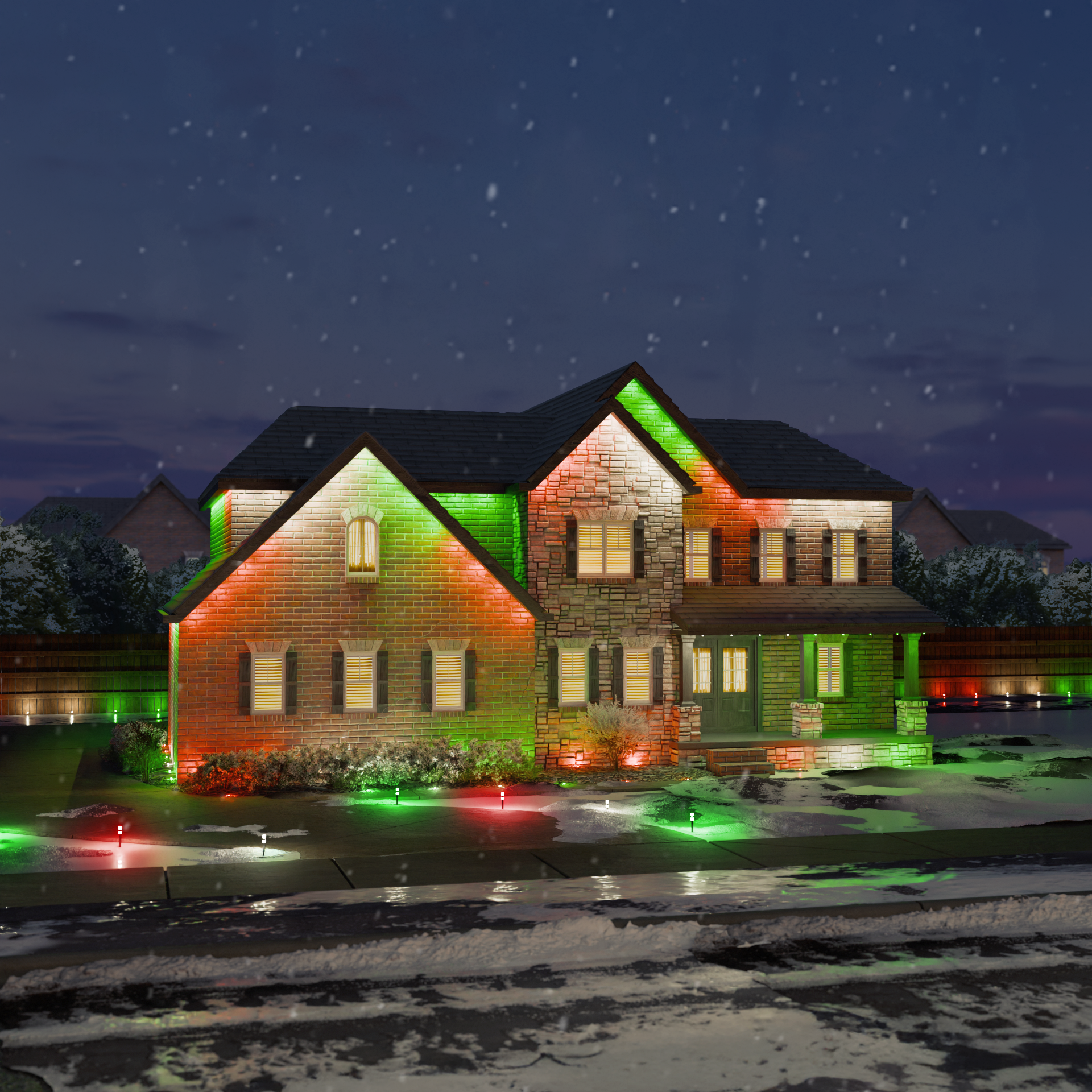 From cozy whites to cheerful reds and greens — create your perfect Christmas glow in seconds with the Enbrighten app.